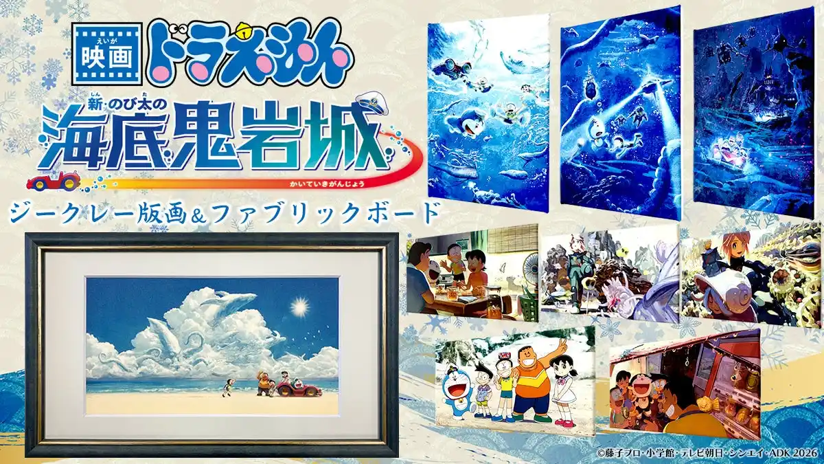 | 『映画ドラえもん 新・のび太の海底鬼岩城』の劇場バナービジュアルやエンドロールなどのイラストが登場するアート作品を「版三 浮世絵工房」で4月24日(金)より発売することが決定しました。 |