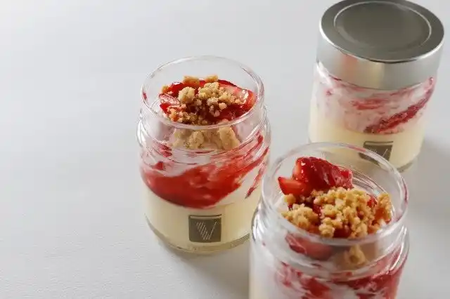 濃厚でなめらかなプリンにチーズクリームといちごを合わせました。 |