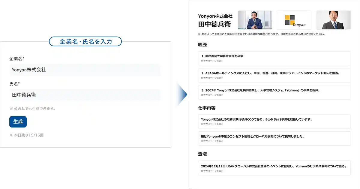 ※1:Sansan株式会社「営業DXサービス『Sansan』、Sansan Labsに「AI人物プロフィール」を実装 |