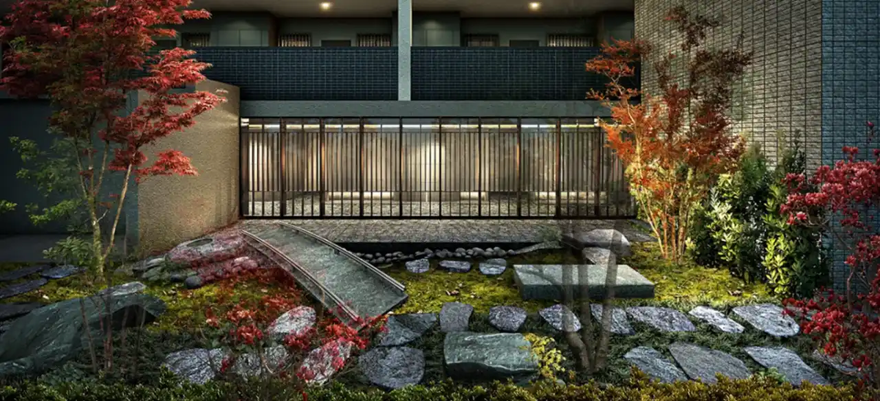 「荒木氏の庭園」の跡地は、江戸時代より続く名勝として知られており、敷地内に今なお息づく歴史の情緒と、豊かな緑と静寂を日常とする暮らしは、他では得がたい唯一無二の価値となります。 |