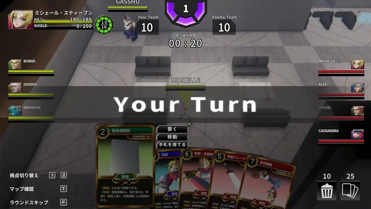全てのカードは通常の使用の代わりに、移動用のカードとして使用することができます。戦場では常に最適なポジショニングが要求されるため、この効果は非常に重要です。しかし、移動に使用したカードはコストとして捨て札に行ってしまいます。カードを通常通り使用するのか、それともカードを捨てて移動を選択するのか。一手一手の行動が勝敗を分ける究極の選択になります。