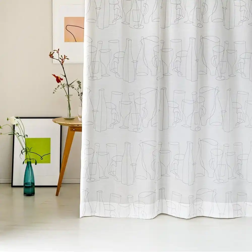 【UVカット率78.9%】ボトルが並んだ、可愛い北欧アートのオリジナルデザイン。自由でエモーショナルなアート空間を! <ボトルレース ホワイト>¥9,800~ (税込)