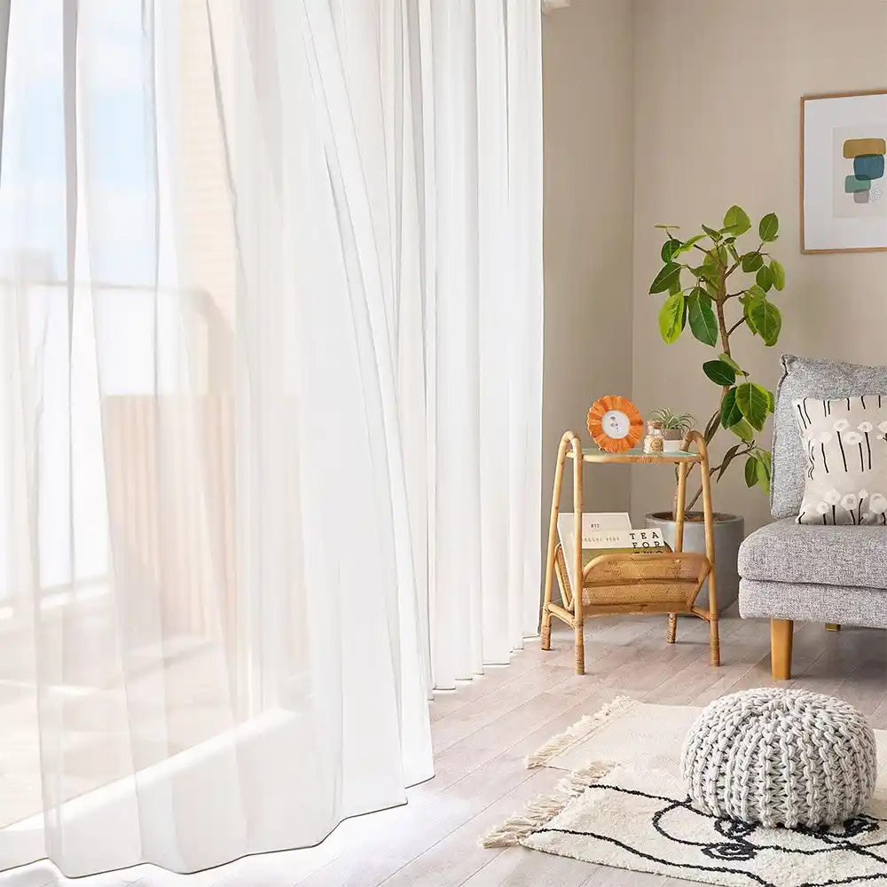 当店で一番人気の遮像レースカーテン「ふわりぃ」に、やさしいニュアンスカラー5色が加わった<ふわりぃ ニュアンス>。UVカット率80.7%をはじめ、遮像や採光、遮熱・保温、防炎、洗濯可能など多彩な機能を備えています。とろけるような柔らかな生地と高い機能性はそのままに、裾巻きロック仕様とカラー巻きロックでオーダーカーテンならではの美しい仕立てを実現しました。見た目の可愛らしさと快適さを両立した一枚です。 |