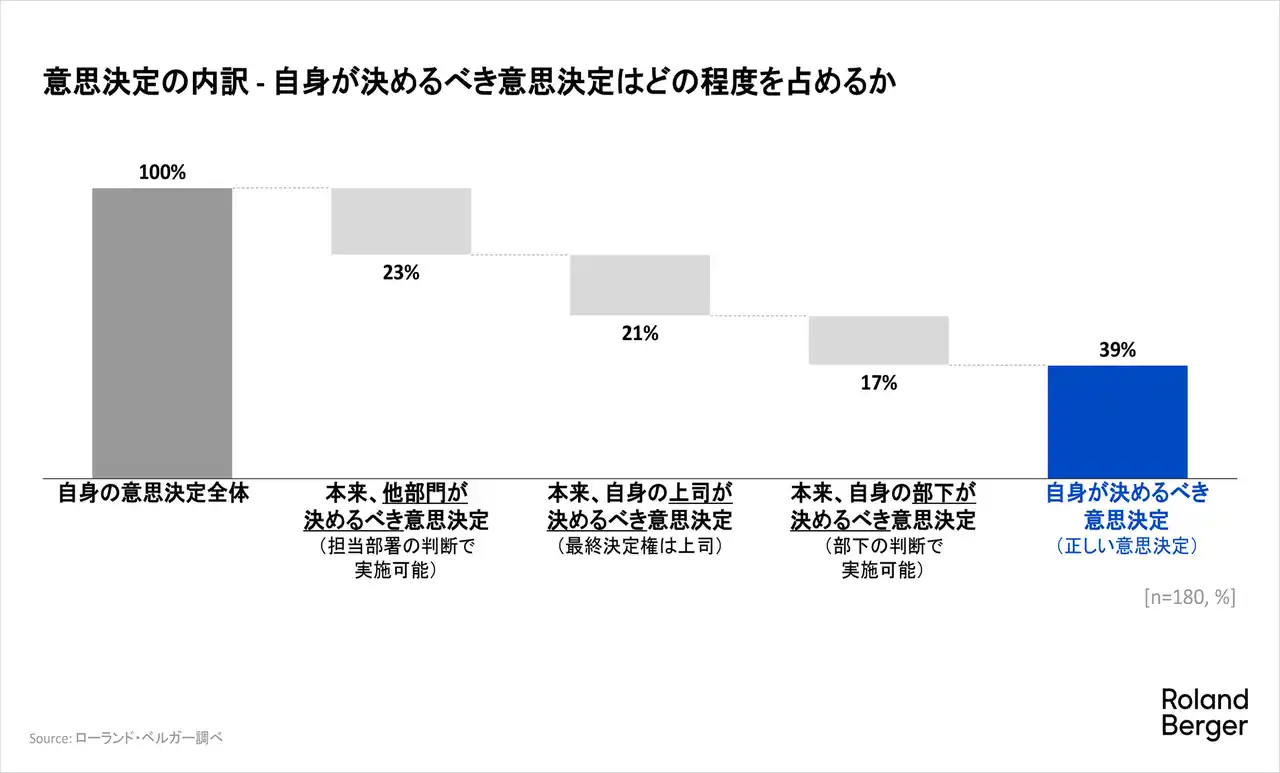自身が関与する意思決定のうち、「本来自身が決めるべき」ものは4割に満たず、残り6割は他部門・上司・部下が決めるべき案件への“巻き込まれ”です |