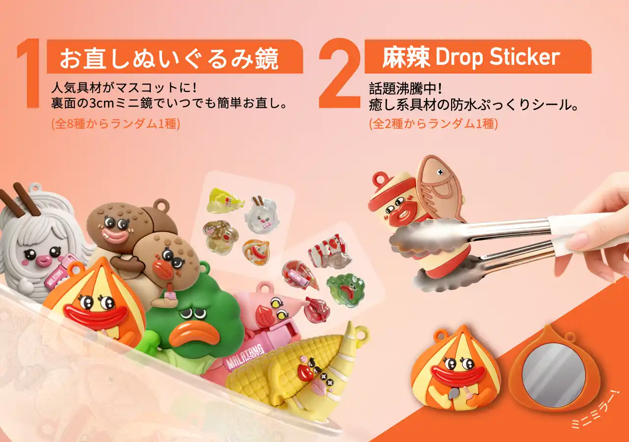 | ●お直しマスコット鏡(全8種よりランダムで1種):麻辣湯の人気具材をモチーフにしたデザイン | ||||||