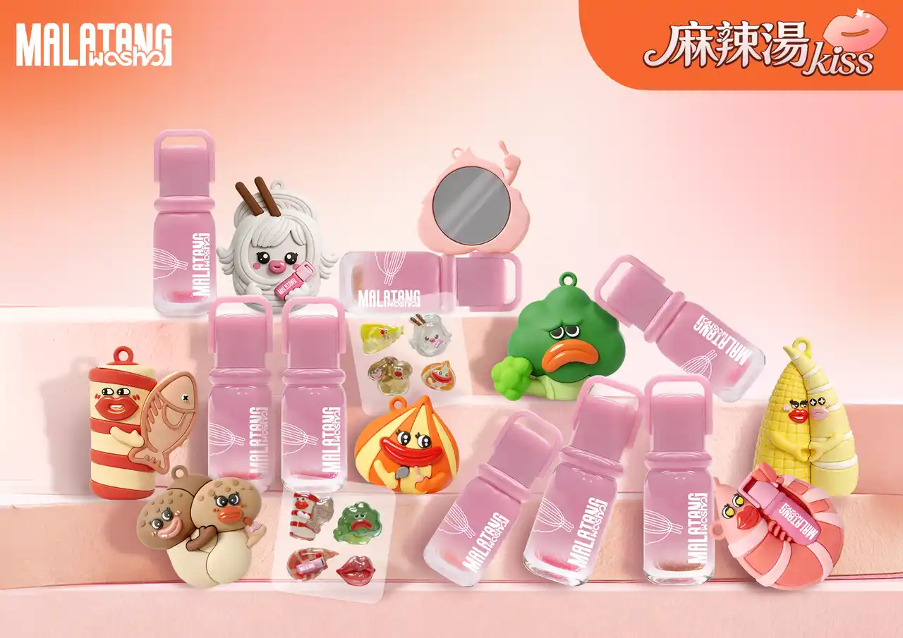 | セット内容:カラーリップ×1、チャームチェーン×1、お直しPVCマスコット鏡×1、麻辣 Drop Sticker×1 | ||||||