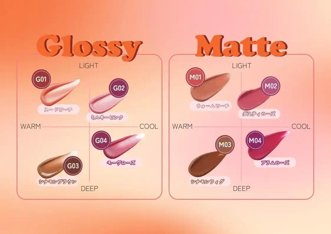 | 「麻辣湯kiss」は、麻辣湯のような熱々×油分の多い食事でも落ちにくいキープ力*を実現。全8色展開で、ちゅるんとしたツヤをキープ*するグロスタイプ4種と、ふわっと軽いマットタイプ4種をラインナップ。どちらも共通しているのは、“色だけじゃなく質感ごと残る”こと。食べても飲んでも、しっかり盛れる。そんな“落ちにくいのに盛れる”理想を形にしました。 | ||||||