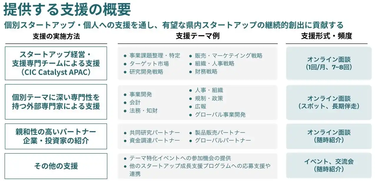 CIC Catalyst APAC 千葉県 革新的スタートアップ成長促進事業担当:chiba-innovation@cic.com |