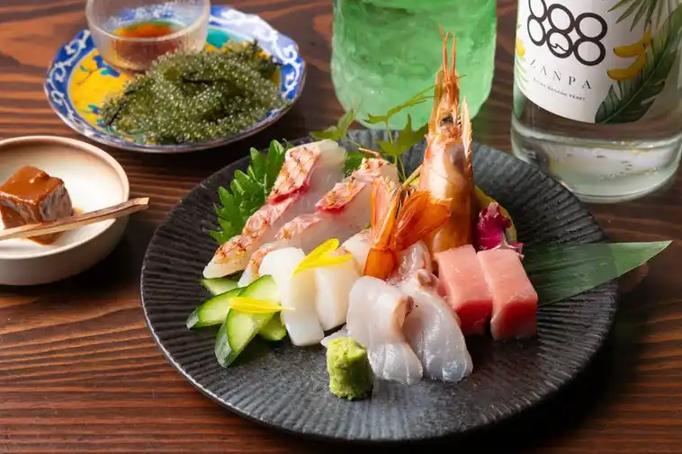 石垣島直送の石垣牛や朝市で目利きした鮮魚など、産地直送にこだわった沖縄食材を使った創作料理や、豊富な地酒を、島にいるように堪能していただけます。店内は沖縄の雰囲気を味わうことができる温かみのある落ち着いた空間で、カウンター席や半個室などシーンによってお選びいただけます。 |
