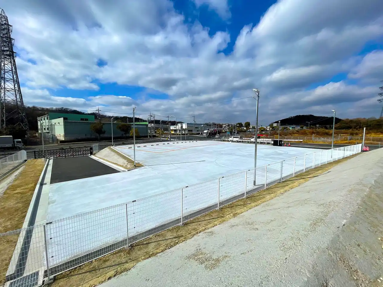 トランスゲート綾瀬は、東名高速道路を挟んだ2か所のスペースで構成しており、関西への出発および関西からの到着にそれぞれ対応します。両スペースをあわせて一度に最大6台のトラックを受け入れることが可能で、無人/有人運転の切り替えにあたりドライバーが待機するためのトレーラーハウスも設けました。一方、トランスゲート神戸西は出発および到着を1か所のスペースに完結させ、最大7台のトラックを受け入れられるようにしました。 |