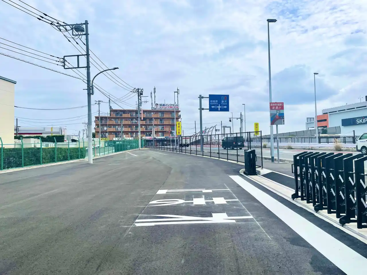 トランスゲート綾瀬の全景(関西への出発スペース、奥には綾瀬スマートIC) |