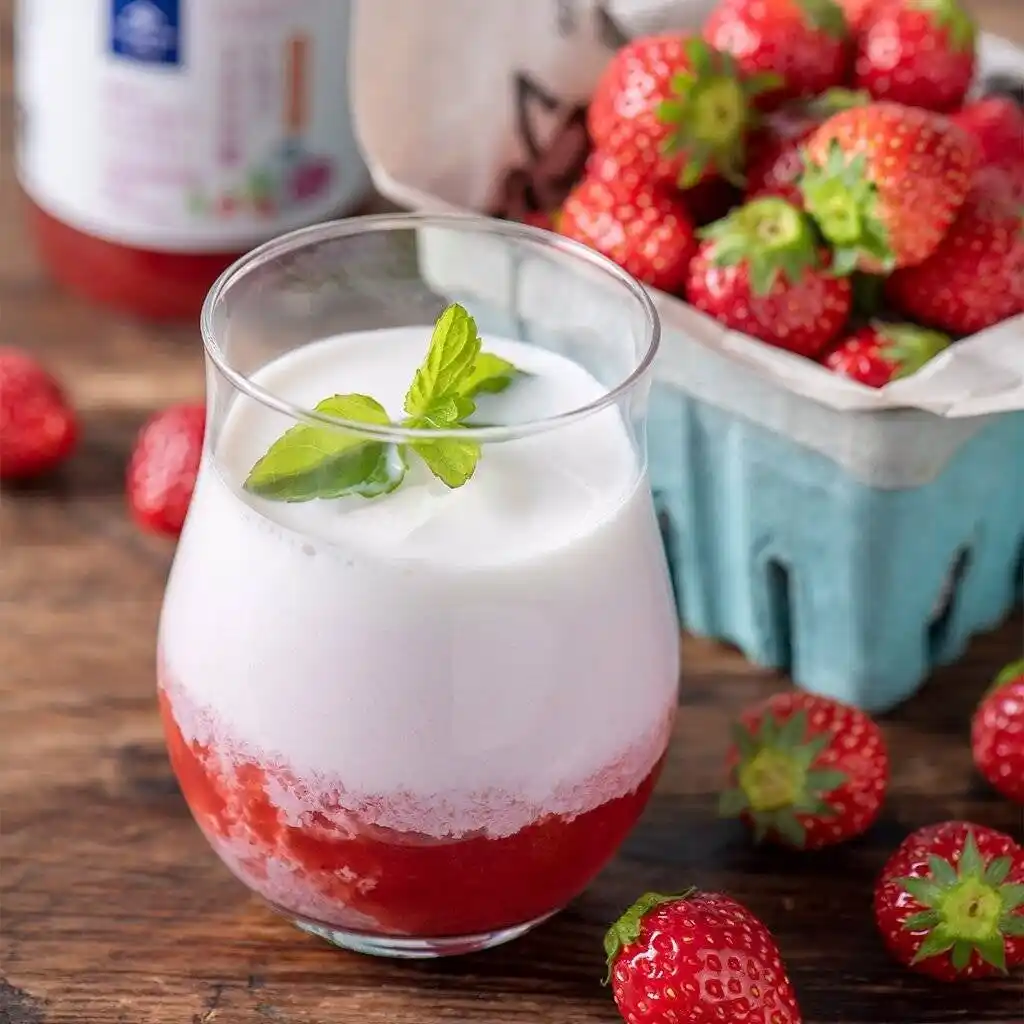 牛乳と混ぜるだけで、甘酸っぱくてトロリと濃厚ないちごミルクができあがります。炭酸やお酒で割って、お好みにアレンジしていただくのもおすすめ。忙しい日々のご褒美時間にピッタリ。 |