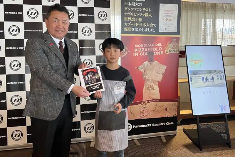 2 月11 日に鹿沼市教育委員会の後援のもと開催され、鹿沼市の松井市長をはじめ、ナポリピッツアの監修をして頂いている坂本大樹シェフ、日本ゴルフ協会 山中専務執行役にも審査員としてご参加いただいた「第2 回鹿沼キッズピッツァコンテスト」において、鹿沼72 賞に入賞した作品を、2 月28 日より鹿沼72 カントリークラブのレストランにてチャリティーメニューとして販売しています。本メニューは1 食につき100 円を公益財団法人古澤育英会へ寄付する取り組みであり、地域の子どもたちの活動を地域の支援につなげる仕組みとして、本イベントにあわせて寄付を実施します。 |