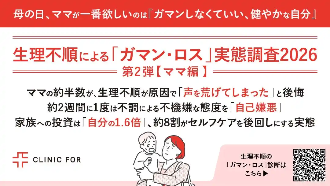 | ママの約半数が、生理不順が原因で「声を荒げてしまった」と後悔/生理不順による「ガマン・ロス」実態調査2026 第2弾【ママ編】 |