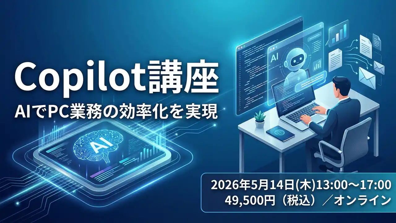 インターネット・アカデミー株式会社(代表取締役:西洸人、本社:東京都新宿区、以下インターネット・アカデミー)は、Microsoft 365 Copilotの業務活用スキルを習得するオンライン公開講座「Copilot講座」を2026年5月14日(木)13:00~17:00に開催します。1名から申し込み可能で、受講料は49,500円(税込)です。 |