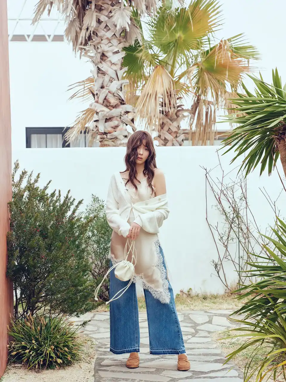 CARDIGAN ¥9,900 CAMISOLE ¥10,450 PANTS ¥15,400 |