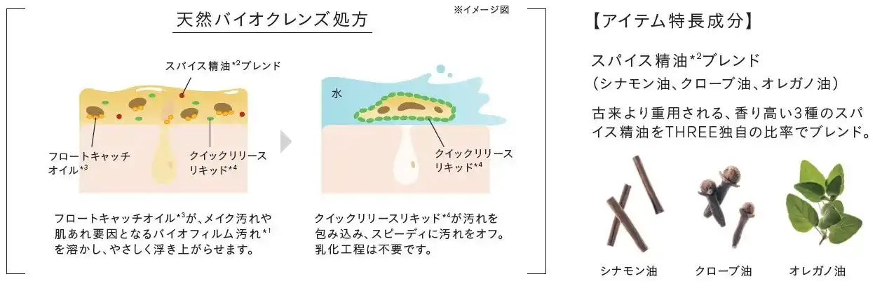 スパイス精油香る、新開発「天然バイオクレンズ処方」を搭載。 ポイントリムーバーと2種の洗顔料には、 |