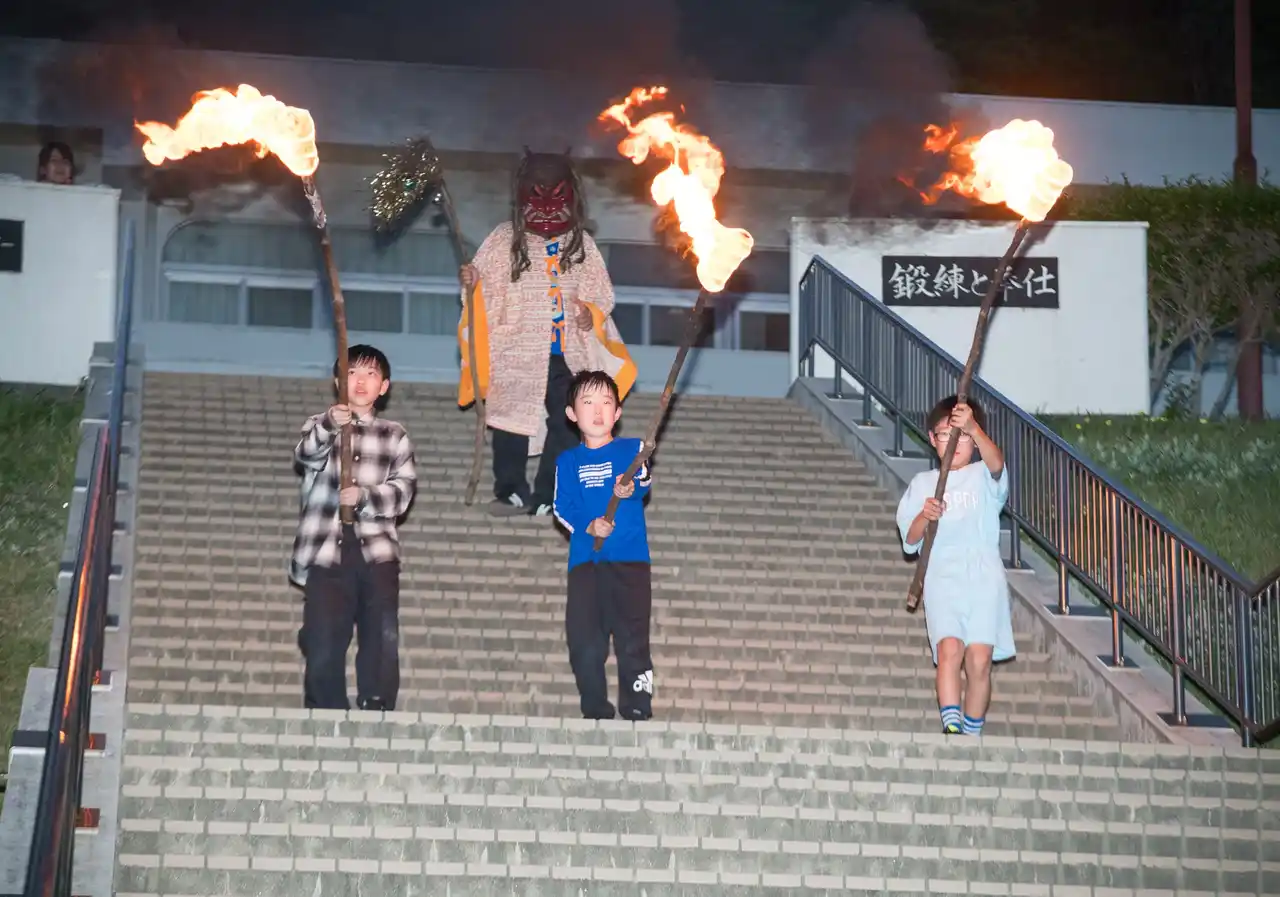 火の神 登場の様子(野外教育センターにて)※衣装は旧来のもの |