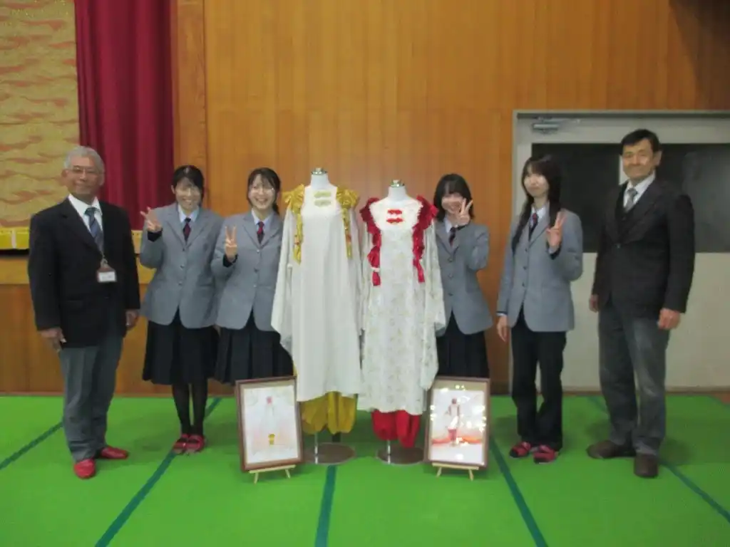 今回、豊橋市立家政高等専修学校ファッションデザインコースIIに在籍する3年生4名が、火の神の衣装製作を担当しました。 |