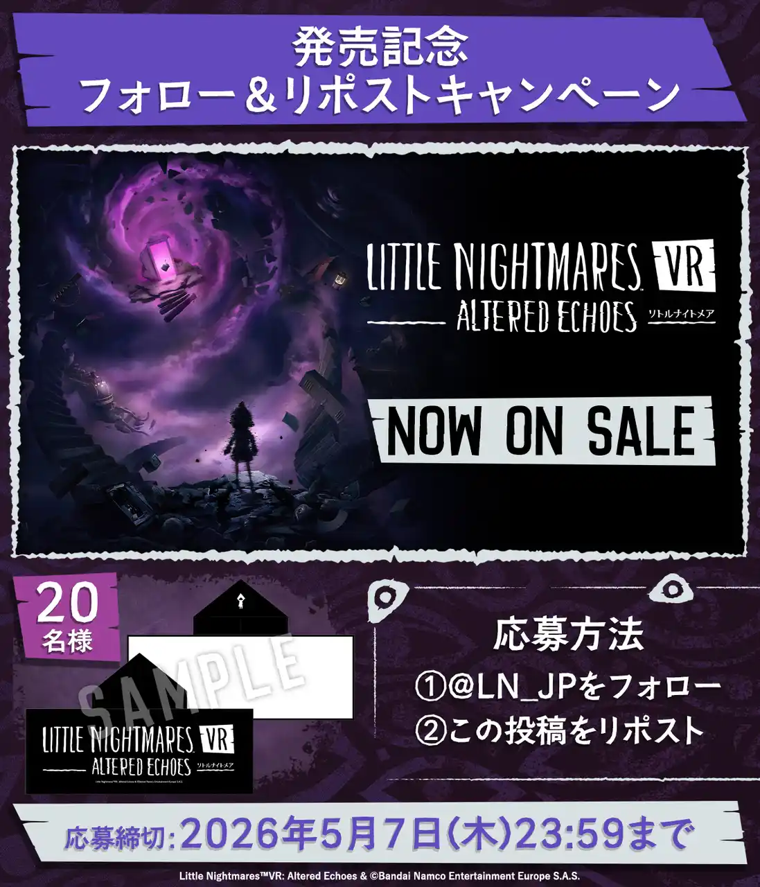 『リトルナイトメア VR Altered Echoes』 発売記念フォロー&リポストキャンペーン |
