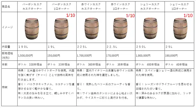 | 2.ウイスキー聖光発売記念カスクオーナーの募集について | |||||||||||||||||||||