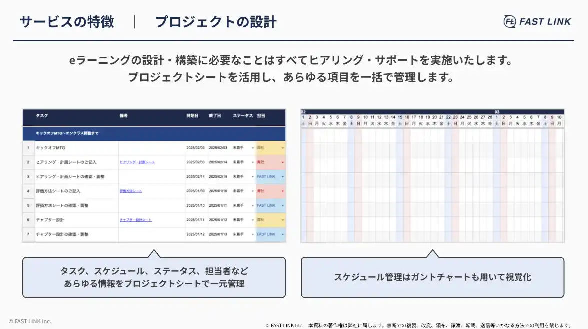 こうした課題に対し、株式会社FAST LINKでは、教育・学習設計から伴走するeラーニング内製化支援サービスの提供を開始しました。 |