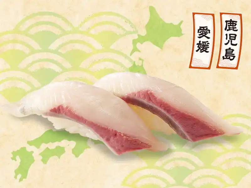【愛媛/鹿児島】ぶりひら: ぶりの旨味とヒラマサの歯ごたえを併せ持つハイブリッド。しっかりとした身質が特徴です。400円 (税込440円) |