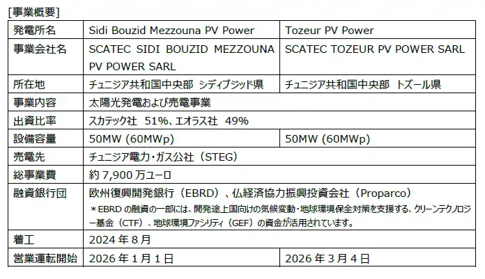 ・2024年8月6日発表:チュニジアで100MWの太陽光発電所IPP事業に参画 |