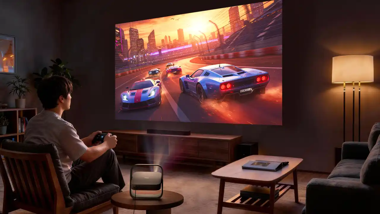 150°回転可能なジンバル一体型デザインにより、壁や天井への投影など、ライフスタイルに合わせた自由な設置を実現します。薄型設計のため、本棚などの限られたスペースにもすっきり収納可能。日常空間に自然に溶け込みます。 |