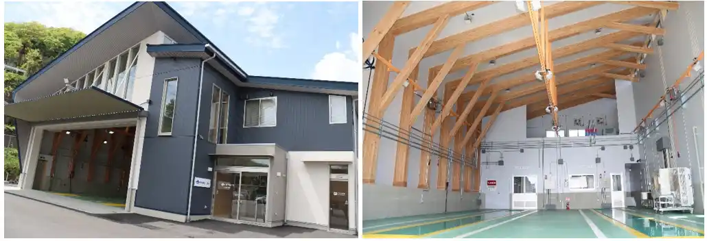 本建物は2階建て(延床面積541.79平方メートル )で、建築時のCO2排出量を抑えるため、環境負荷の少ない木構造を採用している点が大きな特徴です。さらに、屋上に太陽光パネルを設置し、消費電力の約60%をCO2フリーの電力で賄っているほか、内装には同グループ施設「さがみ湖MORI MORI」(神奈川県相模原市)の森の再生事業で発生した間伐材を活用し、FSC(R)認証の家具やリサイクルタイルカーペットを導入するなど、環境に配慮した仕組みを建物全体に取り入れています。 |