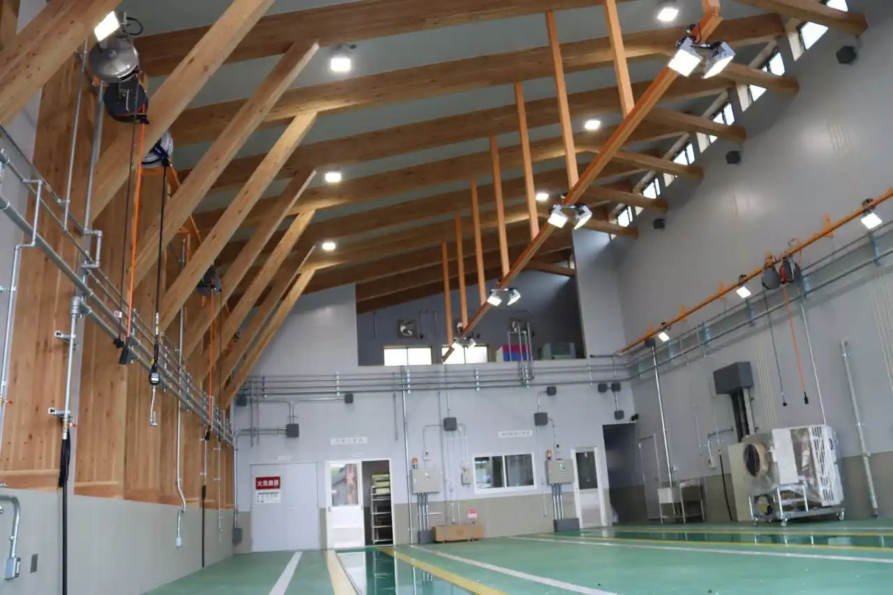 ・建築段階のCO2排出量を抑えるため木構造を採用し、使用木材151㎥のうち99%に国産材 |