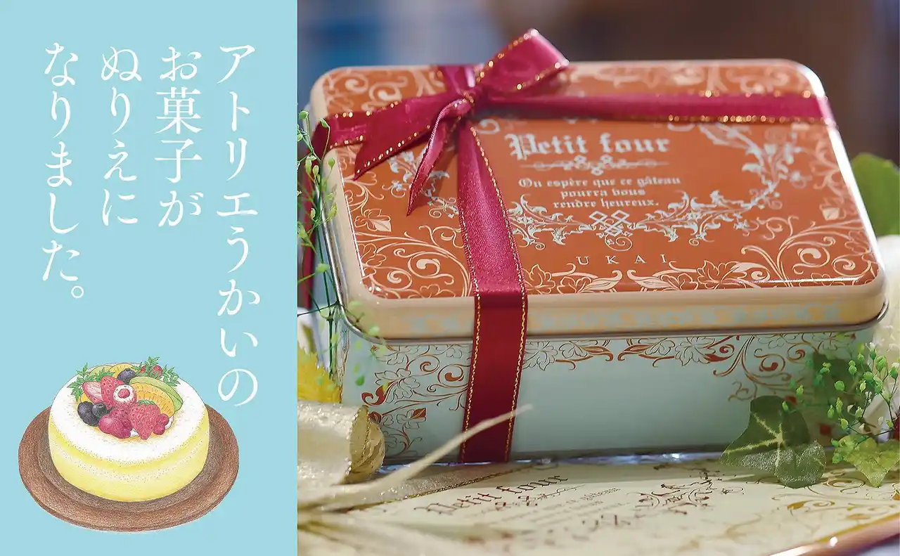 縦180mm、横165mmと小ぶりな冊子に、アトリエうかいのアイコニックな商品「クッキー缶」をモチーフにしたカバーで、まるで本自体がお菓子の箱のような、雰囲気ある凝った装丁を施しました。また、巻末に掲載の「知っておきたい洋菓子のあれこれ」も読み応え十分で、より楽しい仕上がりになっています。ご自分の楽しみのほか、贈り物にも最適な一冊です。 |