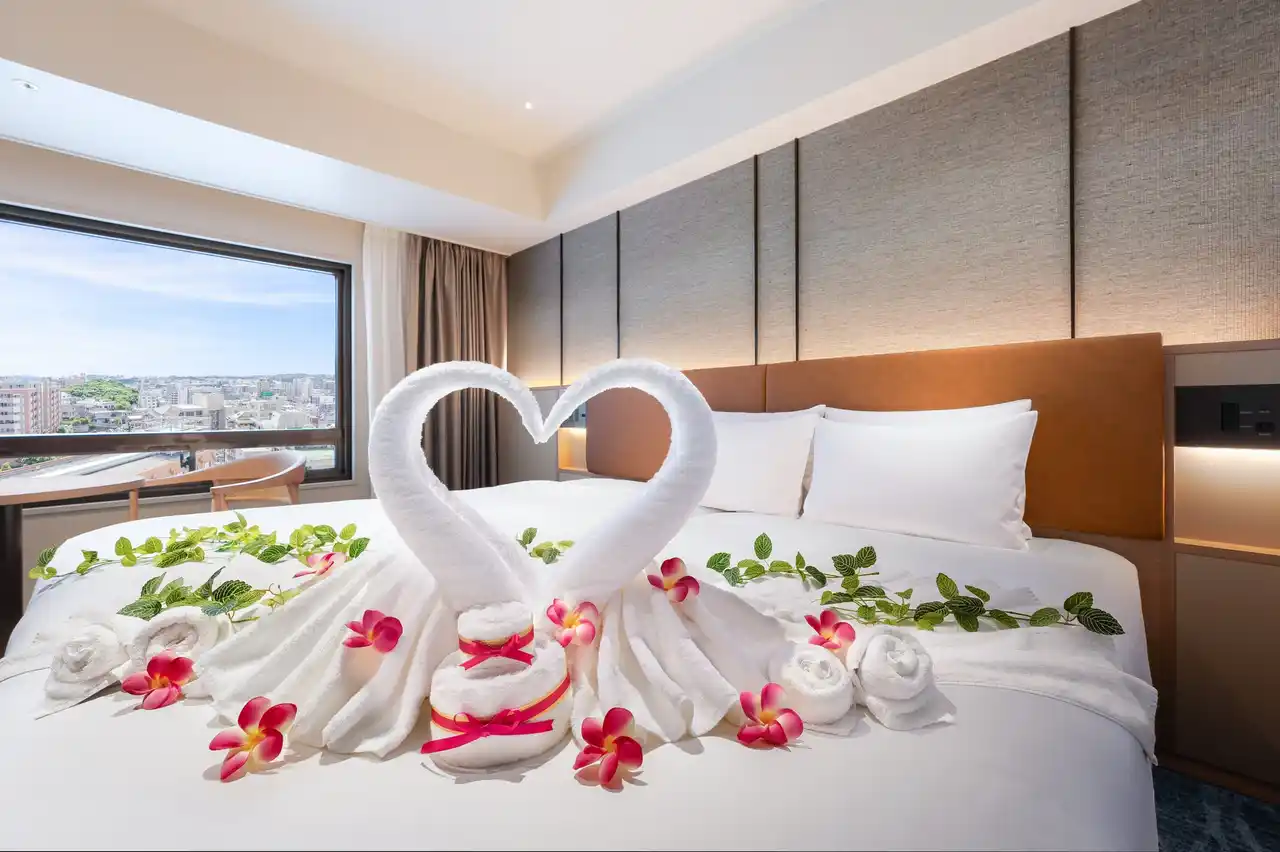 沖縄ハーバービューホテル(沖縄県那覇市泉崎2-46)は、開業50年のホスピタリティを礎に、お客様の大切な一日をより特別なものにする「タオルアート付宿泊プラン」の販売を開始します。 |