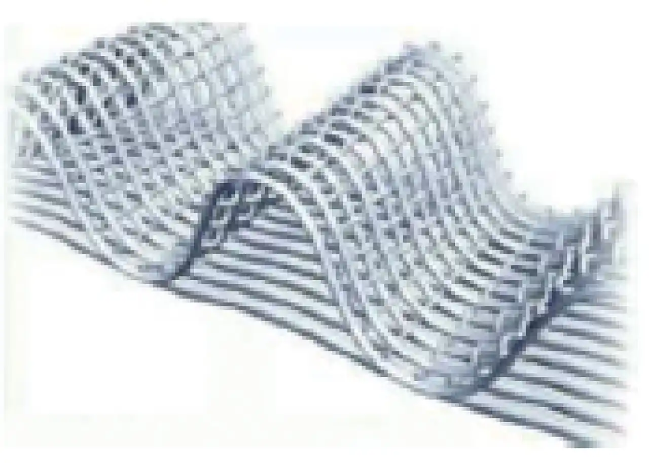 <AQフロント>空気層を多く含む立体構造素材。通気性と軽さに優れ、空気や湿気を逃がしやすいほか、体圧を分散しやすい特長があります。 |