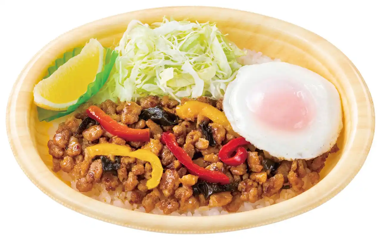 | 毎年ご好評いただいている期間限定メニュー『ガパオライス』が今年も登場します。ホーリーバジルとスパイスが効いた“タイ直輸入”のガパオソースで、鶏ひき肉を香ばしく炒めました。 刺激的な辛さがクセになる、本場さながらの本格的な味わいです。レモンを絞って爽やかな酸味を合わせたり、別添のナンプラー(魚醤)で独特の旨味と深い味わいを堪能できたりと、味の変化をお楽しみいただけます。また、今年は麺タイプの『ガパオまぜ麺』も新登場。もちもちの中太麺にスパイシーな具材がよく絡み、一度食べたらやみつきになる美味しさです。 | |||||||||