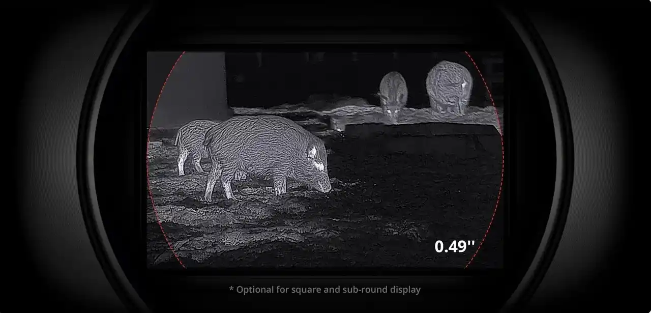 従来のFALCONモデルより25%大型化した0.49型1920×1080フルHD有機EL (OLED)ディスプレイを搭載。対象物だけでなく背景のディテールまで鮮明に描写し、より没入感を高めます。ディスプレイ表示は、好みに応じて円形と四角形から選択可能です。 |