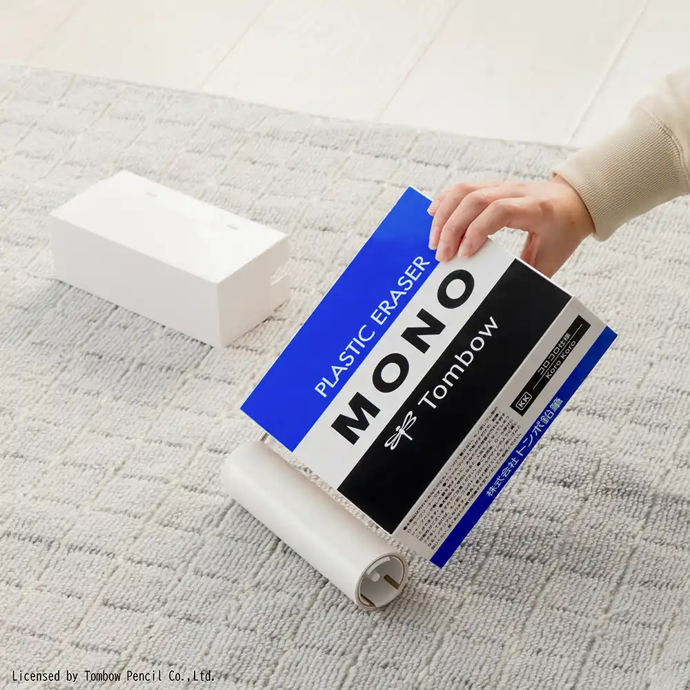 A賞は、「モノ消しゴム」を約60cmの大きなサイズで再現したぬいぐるみです。ふわふわの手触りと存在感たっぷりの大きさで、お部屋に置くだけで癒しの空間を演出します。B賞は、消しゴムのような見た目で楽しくお掃除ができる「モノ消しゴム」デザインのローラークリーナーです。使用しない時はインテリアとしてもお楽しみいただけます。C賞・D賞は、「モノ消しゴム」「消しゴムモノカラーズ