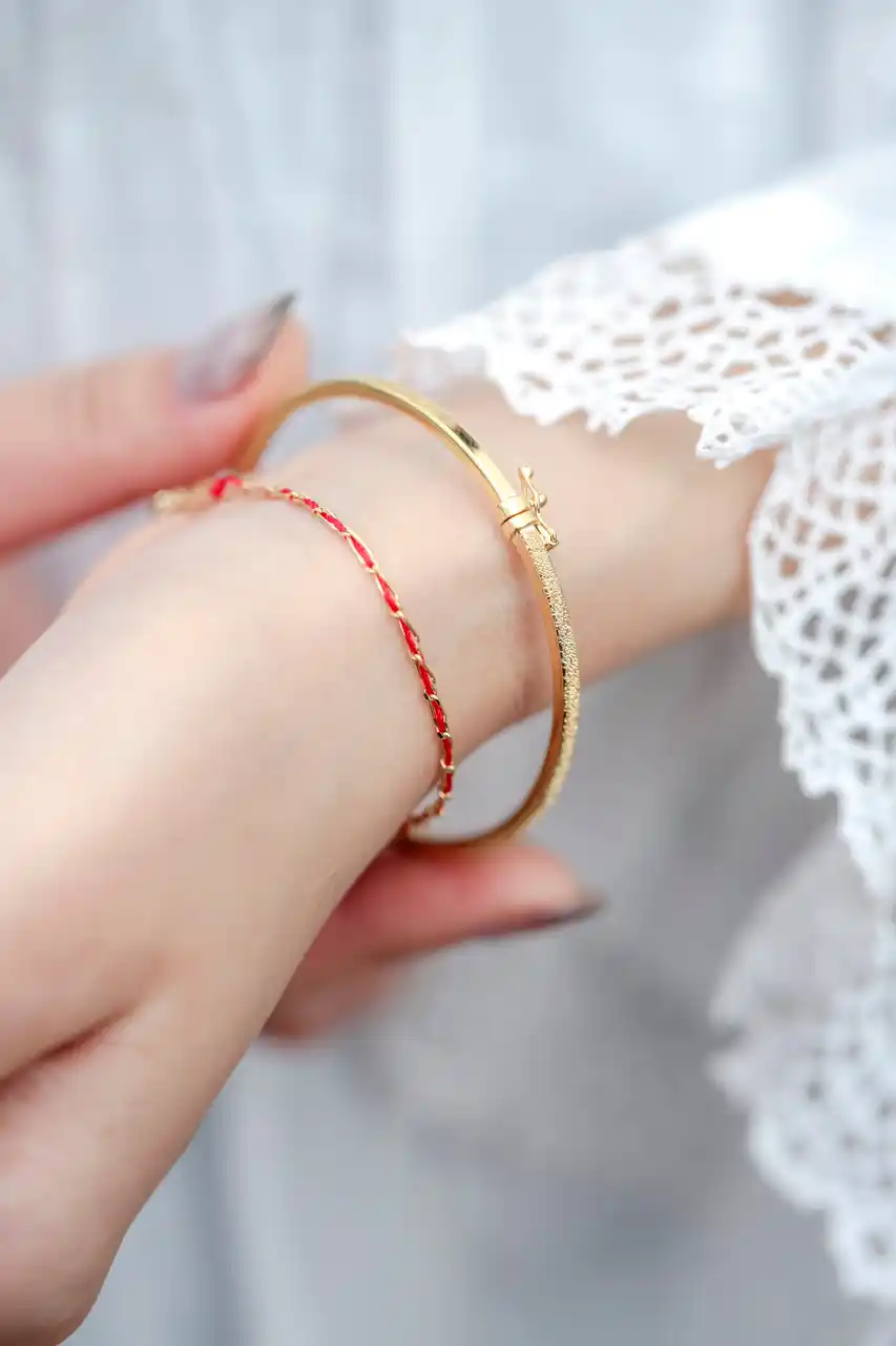 コードブレスレット ¥157,300 / Redline ゴールドバングル ¥415,800 / Carolina Bucci |
