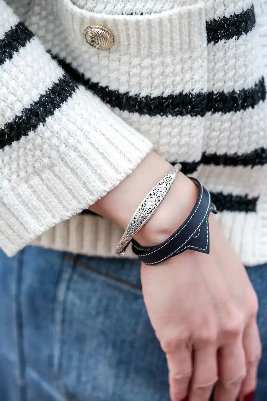 【手首は気の出入り口】シルバーバングル ¥73,700 / GEROCHRISTO レザーバングル ¥40,700 / Vaincourt |