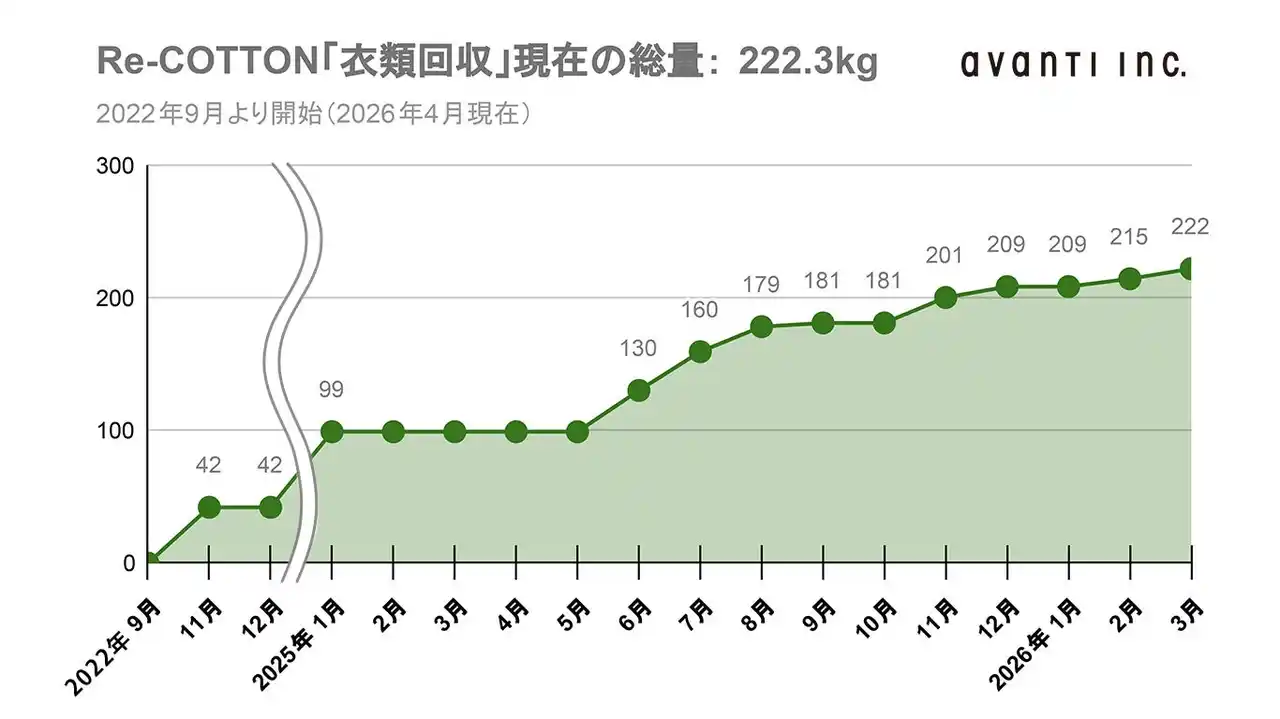 2026年4月現在で総量222kgの衣類が集まっています。