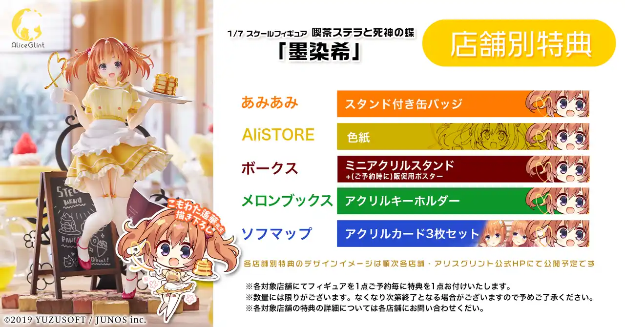 ゆずソフトがおくる大人気ゲーム『喫茶ステラと死神の蝶』より、明るく素直で優しい、幼馴染の女の子「墨染希」を、こもわた遙華先生によるポーズデザインをもとにフィギュア化いたしました。 |
