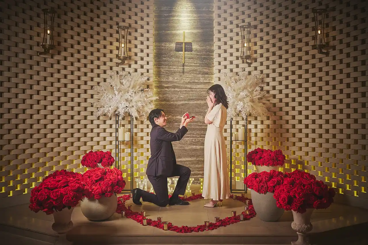 プロポーズは、おふたりの未来のはじまりを告げる大切な節目です。プロデューサーがおふたりの想いやご希望を汲み取り、人生を共に歩むと決めたその瞬間が一生心に残る思い出となるよう、特別なプロポーズをお手伝いします。 |