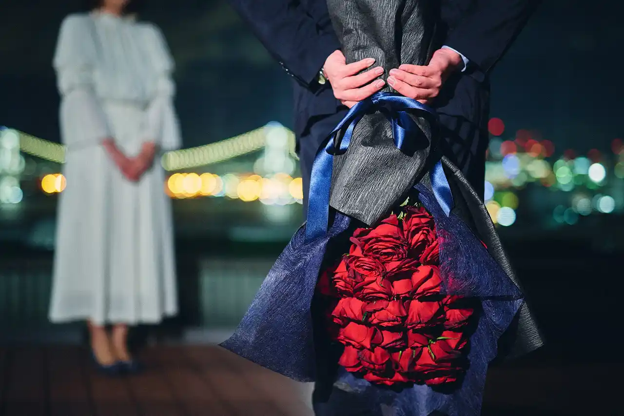 お好みのレストランでのお食事後、キャンドルの灯されたベイサイドテラスで、レインボーブリッジの夜景を背景に「真実の愛」という意味を持つ21本の薔薇の花束を贈り、プロポーズをしていただきます。 |