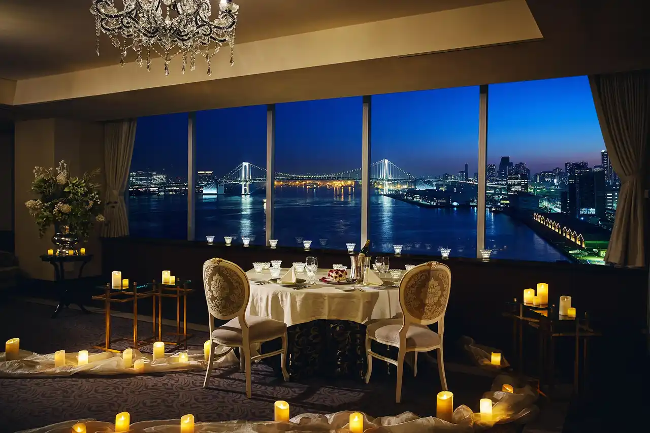 美しい夜景が広がるオーシャンビューダイニングでロマンチックなひとときが過ごせる東京ベイサイドプロポーズ |