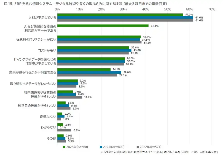 ・ERPを含む情報システム/デジタル技術やDXの取り組みに関する課題 |