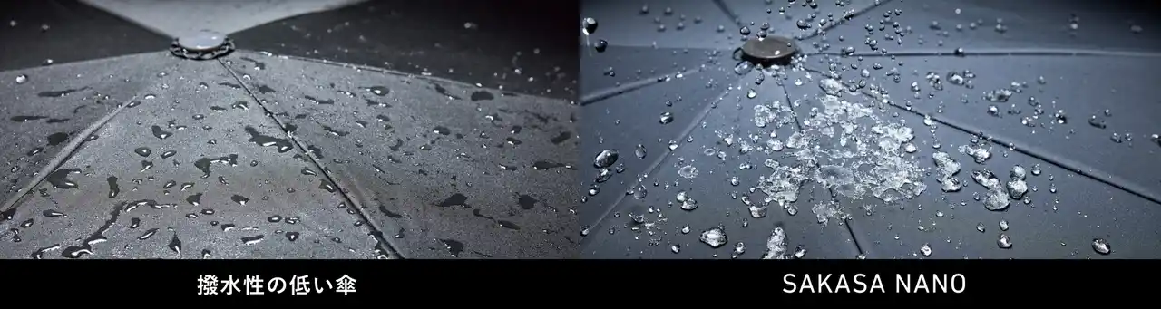 「SAKASANANO」は、この課題に真正面から向き合い、東レの「NANODESIGN(R)︎(ナノデザイン)」技術を傘に応用した業界初の製品として、撥水剤のみに頼らず高い撥水性を実現。さらに、生地の張り替えが可能な構造を備えることで、長く使い続けられる“育てる傘”という新しい価値を提案します。 |