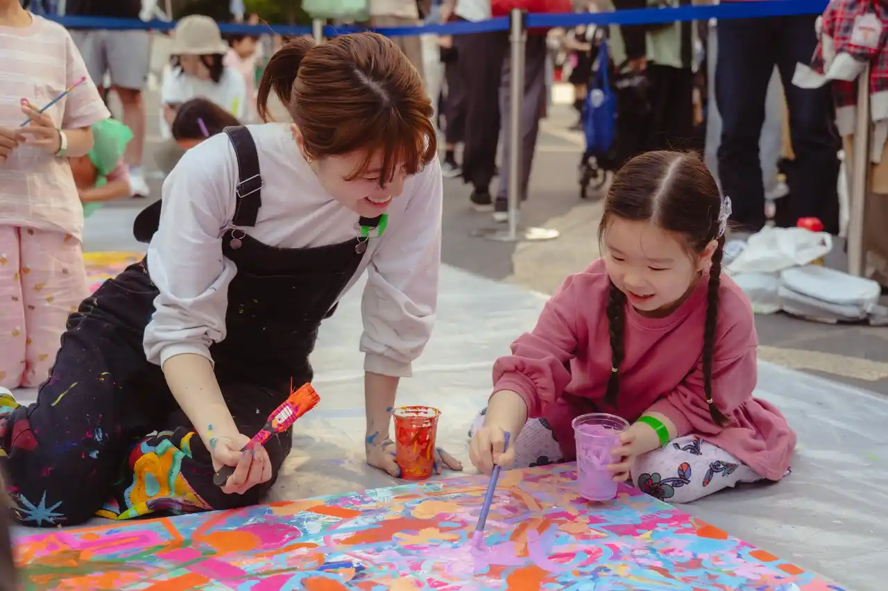 本イベントでは、「すべてのキッズはアーティスト」をコンセプトに、子ども向けワークショップとアーティストによるライブパフォーマンスを掛け合わせた、即興のアート公開制作を実施します。Hareza池袋での開催は今年で4回目となり、前回2025年の開催時には総勢60名にご参加いただきました。子どもたちが自由に描いたキャンバスに、アーティストがライブパフォーマンスで作品を仕上げることで、子どもたちの無限の可能性と、アーティストの感性が融合した、唯一無二のアート作品が生み出されます。