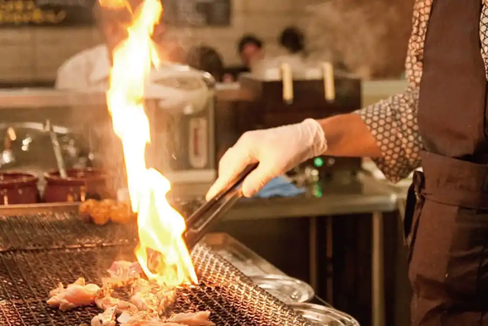 | さらに、その鮮度を最大限に活かすため、人の手に触れる回数を極力減らし、あえて串打ちをしない直火焼きの「皿盛り」で提供するのが最大の特徴です。 | ||||||||||||||