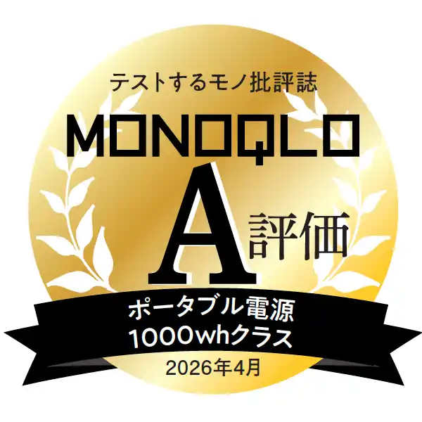 Power 1000 Miniは2026年2月10日の発売以来、様々な反響をいただいています。発売後第一週には、Amazonの「ポータブル電源・蓄電池の売れ筋ランキング」カテゴリにて1位を獲得(2026年2月12日付)、ビックカメラの「ポータブル電源 週間売れ筋ランキング」にランクインしました(2026年2月14日付)。さらに、「テストするモノ批評誌MONOQLO(2026年4月号)」では1000Whクラスのポータブル電源部門において「A評価」を獲得、また、防災必要性・安全性・機能性において、防災安全協会の評点をクリアし「防災製品等推奨品認証」を受けています。 |