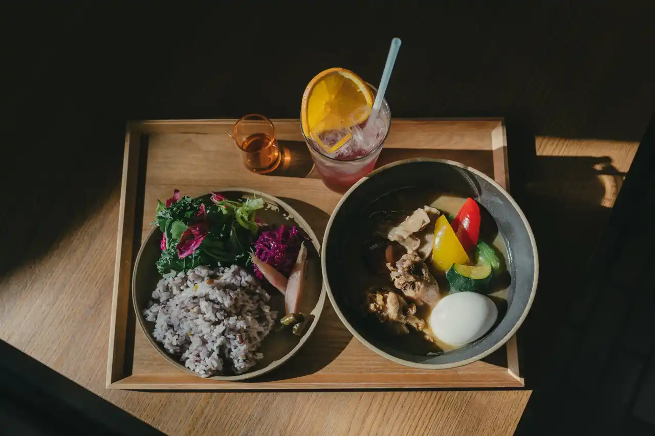 鎌倉の魅力を感じたあとは、緑豊かなガーデンに囲まれたBIRD HOTELの食体験を楽しめるレストラン「THE TABLE」で、ととのった身体に染み渡る“サ飯”を。この季節には「ボーンベジブロス ととのい極カレー・赤紫蘇ソーダ」をご提供。サウナ後の塩分摂取に効果的な回復食としてのスープカレーは、時間をかけてじっくりととった出汁に、こだわりのスパイスを効かせたシェフのこだわりの一杯。心地よい海風を感じるテラス席も、この季節ならではの特等席。巡りをととのえ、お腹が満たされたあとには、ホテルから徒歩3分の由比ヶ浜まで足を延ばしてみるのもおすすめです。 |